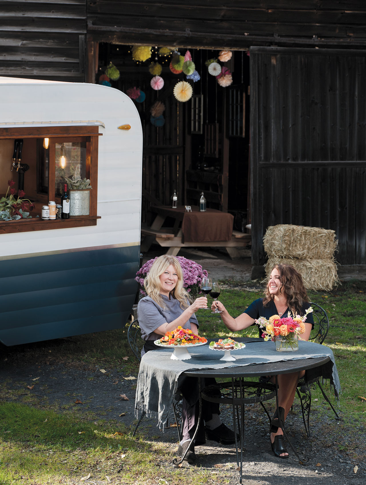 After several collabs in the Hudson Valley wedding scene, Jeanette Maier (Fancy Girl Table) and Michelle Boye (Tapped Into The Catskills) wanted a meaningful connection, so they’ve joined forces at Edesia, a new food and beverage company that elevates events to artistry. Edesia is a one-stop feast for all parties that combines the sustainable, organic catering options that first put Fancy Girl on the map and the custom-built, vintage trailer-turned-mobile bar that is Tapped’s signature offering. Cool.