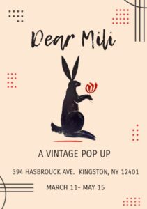 Dear Mili is located at 394 Hasbrouck Avenue Kingston, NY. Hours are Wednesday-Sunday 10-6pm and by appointment on Monday and Tuesday.